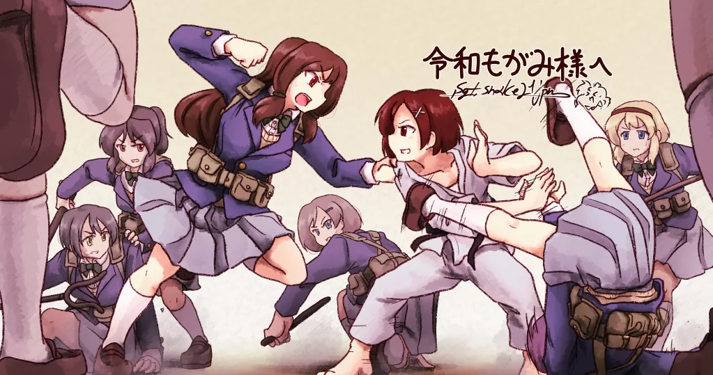 もがみ様 ( twitter.com/Mogami2676 ) のところの國後さんと蛇家の武装JKさんたち。